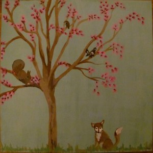 Just finished this sweet little painting. I have to admit that I LOVED it when it was just the green background with the flowering tree. I like it OK with the added animals, but I would have preferred to keep it plain. Oh well! Gotta do what the people want!