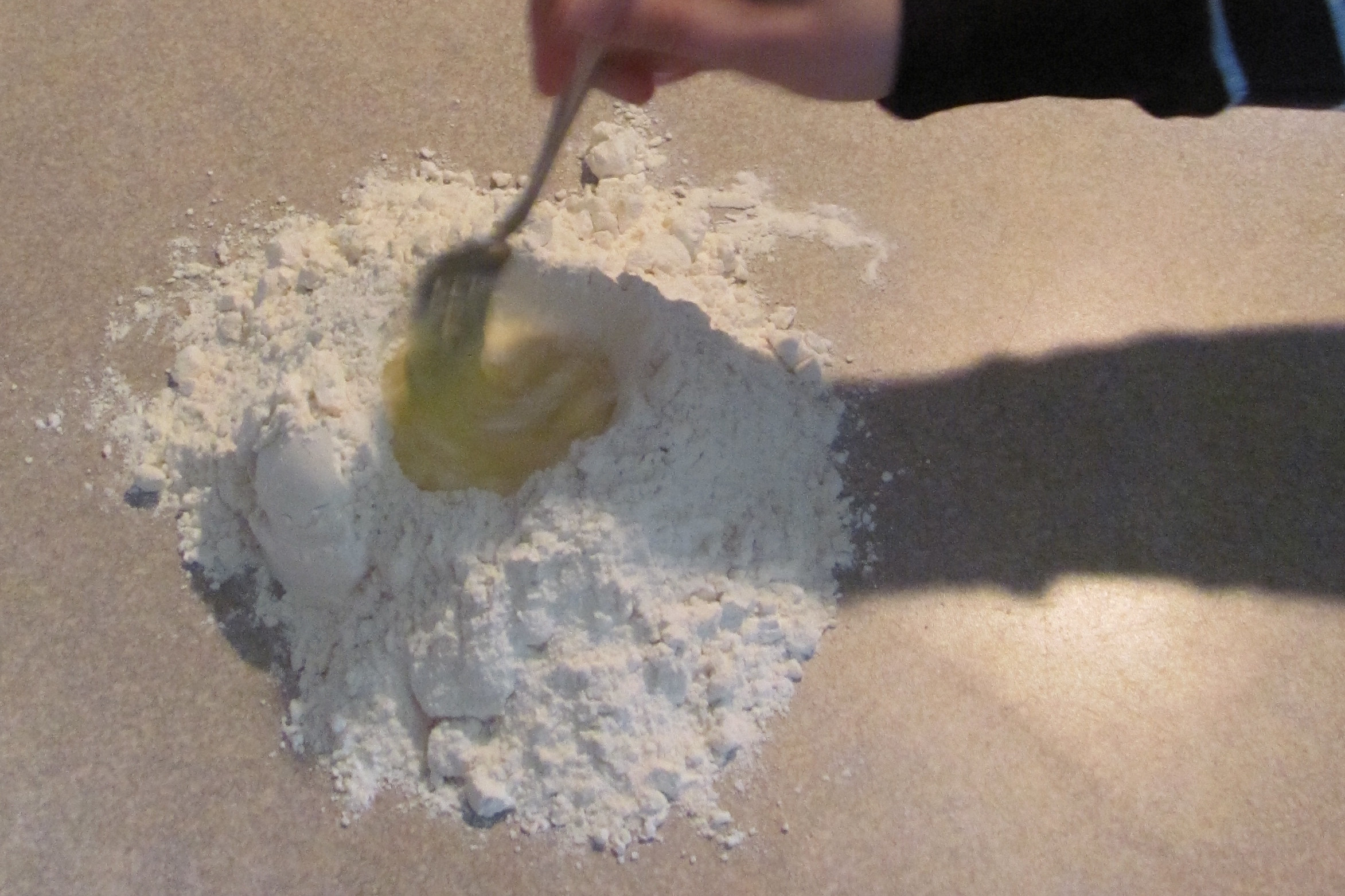 The dough is almost the same as pasta dough. You mix it all right on the counter.