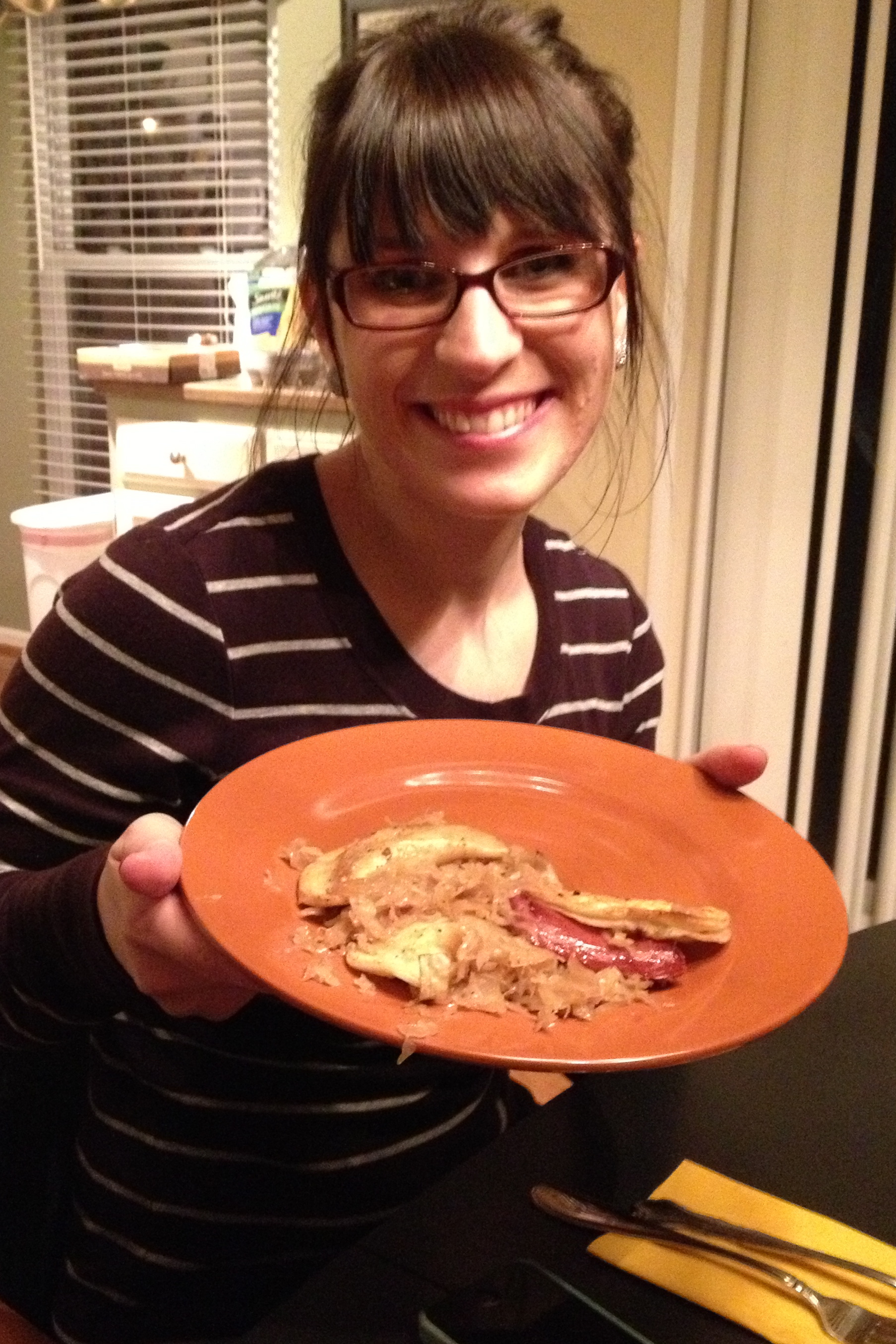 I made the sauerkraut. I have never done that before. I have also never eaten it before. It was good! Of course I made it with Guinness. Yum. Guinness makes everything yummy.