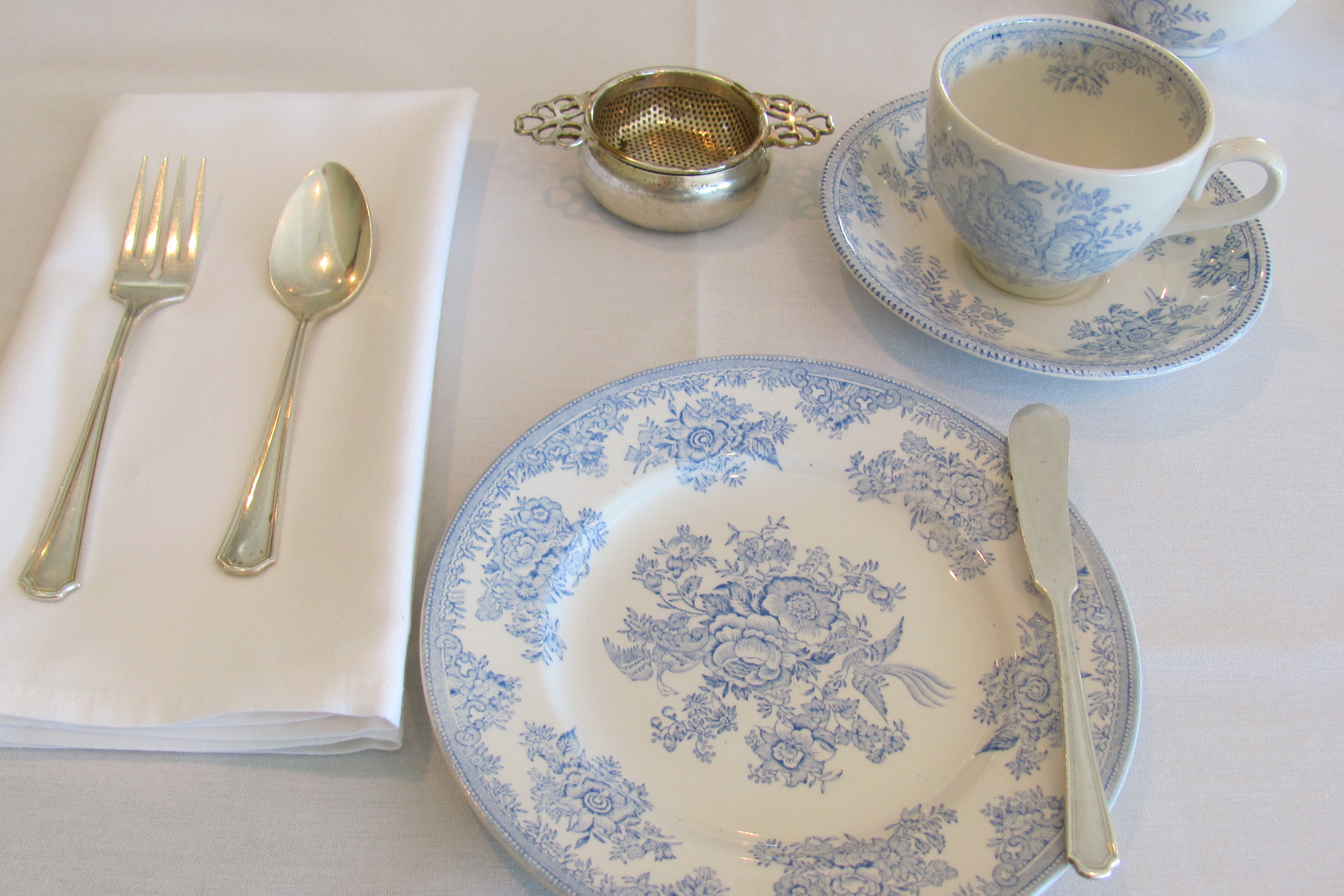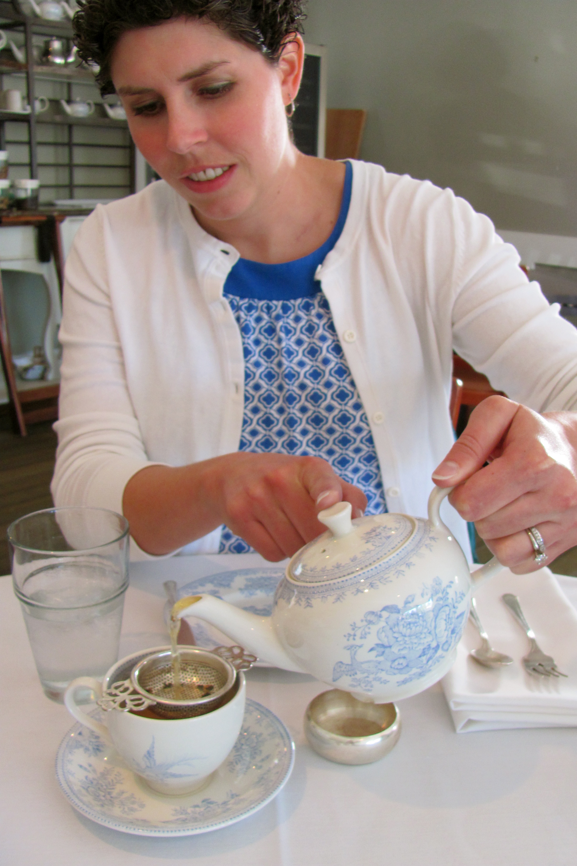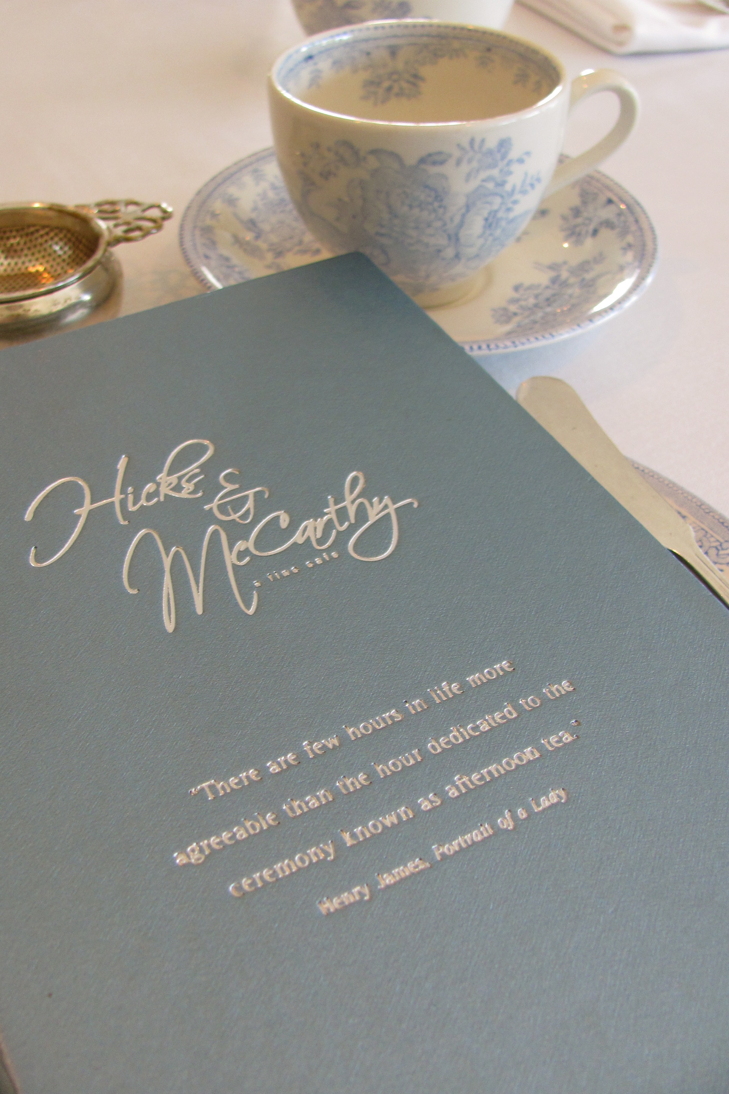 White linens, ornate blue and white china and stately silver adorned the tables in the tea room at Hicks and McCarthy. Soft aromas of tea and pastries wafted past us as we sat down at our table. Quiet excitement filled the air. We felt fancy. And hungry!